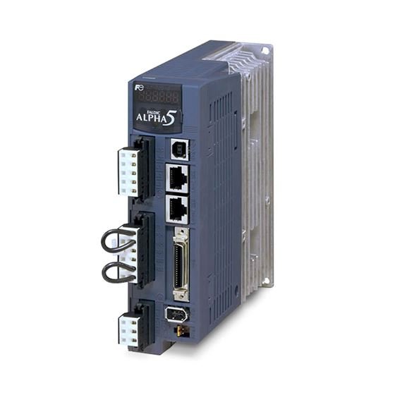 Alpha 5 Series offers compatibility with general-purpose communication: VV type. The positioning function is embedded as standard in general purpose interface unit “ALPHA5 VV”. As the ALPHA5 VV type is the standard model, external positioning unit or dedicated items for positioning are not required. The following operations are enabled by one unit: Positioning via Modbus-RTU communications (immediate value data) Positioning via Di/Do signal (positioning data 15 points*) Controlling positions, speeds and torques via pulse/analog input. Operations such as PTP positioning operation, parameter edit, and various monitoring are enabled. All you need to do is connect HMI (POD), general-purpose PLC, or PC controller directly to servo amplifier via Modbus-RTU communications. It is also compatible with SX bus: VS Type and LS type – A sophisticated motion control system that has synchronization and interpolation controls can be configured easily.